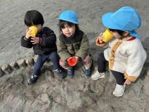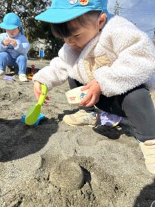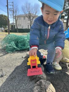 砂場では🚗を走らせたり、