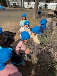 植物を触ったり
